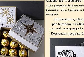 Voici les réalisations faites lors de l’atelier adultes de Novembre 2017, une petite boite pour chocolat avec sa petite carte.