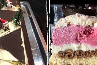 – 1 h 15 pour le croustillant, le bavarois au chocolat blanc et le montage.