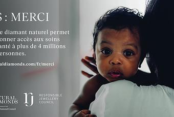 Natural Diamond Council (NDC), avec le soutien du Responsible Jewellery Council (RJC), lance une nouvelle campagne " PS : MERCI ". Durabilité et engagement social, l'industrie du diamant naturel présente son impact positif, chiffres à l'appui, sur la santé, l'éducation, la biodiversité. Miracle de la nature, le diamant naturel est également un cadeau précieux pour les personnes et l'économie des pays où il se trouve. Choisir cette pierre rare et précieuse, c'est se faire plaisir tout en contribuant à faire le bien autour de nous.