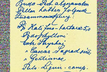 [DE] Nach ihrer Kissinger Kur im Jahre 1897 erbat sich die Kaiserin von ihrem Kurarzt Dr. Alfred Sotier Rezepte, die sie sich an verschiedene Aufenthaltsorte nachsenden ließ. Die Abbildung zeigt das Rezept für Pillen, welche sich die Kaiserin am 16. Oktober 1897 nach Budapest schicken ließ.