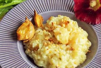 Aujourd'hui, je vous propose un Risotto aux héliantis (ou topinambours) confits (Vegan) :
