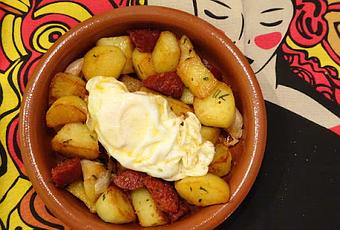 Servir l'œuf au milieu de l'assiette et entourer avec les pommes de terre