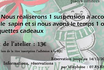 Hello, hello ! Voici la réalisation que nous avions faite pour l’atelier du 15/12/2018, une petite déco pour orner le sapin.