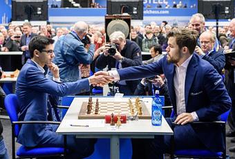 Le Hollandais Anish Giri face au quintuple champion du monde d'échecs Magnus Carlsen au tournoi d'échecs Tata Steel Chess - Photo © site officiel