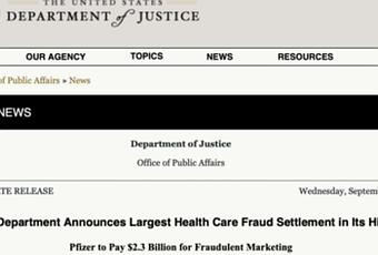 Il est à noter que Pfizer a un casier judiciaire (2009) auprès du ministère américain de la Justice sur des accusations de « marketing frauduleux ».