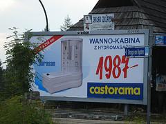 Pourquoi ne trouve-t-on pas cela en France ? Cette publicité pour Castorama photographiée en Pologne présente LE produit révolutionnaire que je cherchais, le concept innovant qui résout les problèmes de petite salle de bain. Il s'agit tout simplement de l'union baignoire + douche en un seul et même produit ! Soit, un gain de place considérable pour avoir le tout en 1. Avec un plus, l'hydromassage, non négligeable pour le bien être. Le tout pour un prix dérisoire : environ 620 euros au cours actuel du zloty. Seul souci : il vous faudra aller le chercher en Pologne, car en France, on n'en trouve pas pour le moment, ou alors j'ai mal cherché... :-(