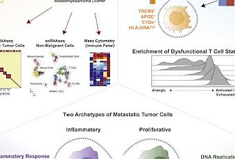 La métastase cérébrale (BrM) est la forme la plus courante de cancer du cerveau, caractérisée par un handicap neurologique et un pronostic sombre. Malheureusement, notre compréhension de la biologie sous-jacente des BrMs humaines reste rudimentaire. Ici, nous présentons une analyse intégrative de plus de 100 000 cellules malignes et non malignes de 15 BrMs parenchymateuses humaines, générées par transcriptomique unicellulaire, cytométrie de masse et complétées par des approches de modèle de souris et in silico. Nous avons interrogé la composition des niches BrM, défini moléculairement l'interface sang-tumeur et révélé des états immunosuppresseurs stromaux enrichis de cellules T infiltrées et de macrophages. L'interrogation unicellulaire spécifique des cellules tumorales métastatiques fournit un cadre de 8 programmes cellulaires fonctionnels qui coexistent ou sont anticorrélés. Collectivement, ces programmes définissent deux archétypes BrM fonctionnels, l'un prolifératif et l'autre inflammatoire, qui sont évidemment façonnés par des interactions tumeur-immunité. Notre ressource fournit une base pour comprendre la base moléculaire de la BrM chez les patients présentant des traits environnementaux intrinsèques aux cellules tumorales et à l'hôte. Hugo Gonzalez, et al, dans Cell, publication en ligne en avant-première, 20 janvier 2022