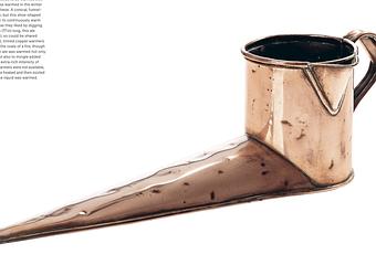 Un chauffe-bière en cuivre utilisé pendant les mois d’hiver se trouve dans le chapitre « Chauffer et transformer » de « Outils pour l’alimentation », le recueil d’ustensiles de cuisine de Corinne Mynatt du monde entier et à travers les époques.
