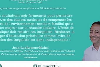 Au conseil d’arrondissement de Paris12, j’ai rappelé l'importance de la politique d'éducation prioritaire dans la lutte contre les inégalités sociales et la démocratisation de la réussite scolaire.