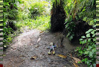 m’engageai dans un chemin de terre serpentant entre des bosquets.Là, tapie dans l’ombre, à moitié cachée par une branche qui s’inclinait sur elle, dormait une poupée de chiffon. Innocente, érodée par les pluies qu’elle avait endurées, elle gisait. À qui avait-elle appartenu ? Où était l’enfant qui l’avait perdue ?