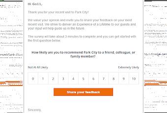 Il y a quelques jours, j'ai reçu un questionnaire d'évaluation concernant la performance de Park City Mountain, qui en tant que station de ski est membre du reseau de Vail Resorts, et voici mes réponses...