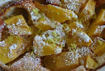 A la sortie du four, saupoudrer de sucre glace et de zeste de citron vert râpée