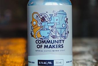 Community of Makers est une stout impériale lourde avec des notes audacieuses de chocolat fourré au rhum et de café noir riche. Notre toute première bière nitro est agréable et lourde, crémeuse et onctueuse. Il est évident que l'alcool vous réchauffera pendant que vous partagez une pinte avec vos amis à côté d'un feu de camp en hiver.