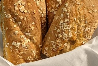 Couvrez de nouveau. Laissez lever 30 min de nouveau.Mouillez un pinceau d'eau. Passez-le sur toute la baguette.Vous pouvez enfourner nature ou saupoudrer la baguette de farine ou de flocons d'avoine.Cuisson :