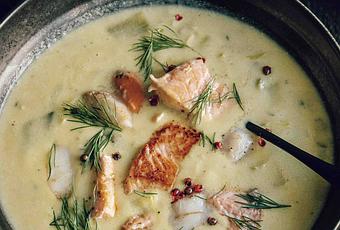 Quand nous sommes allés en Norvège, il y a 2 ans, avec ma plus jeune fille, j'avais mangé une soupe au saumon hyper crémeuse, délicieuse et j'avais envie d'arriver à la reproduire mais sans y mettre non plus la totalité du pot de crème fraîche.