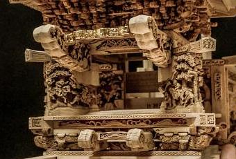 Des miniatures en bois sculpté de chars de parade Danjiri, qui mettent bien en lumière le savoir-faire dans chacune des réalisations.