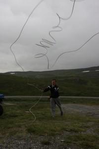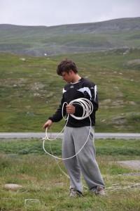 Après cette discussion concluante et qui nous réjouit tous, les deux jeunes m’emmènent dehors et m’apprennent à lancer le lasso pour attraper le renne. “Hey ! you are a Sàmi boy now !“, qu’ils disent!