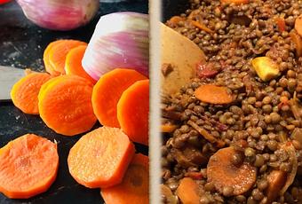 Je suis un peu la seul à manger des lentilles, certains ne les supportent pas bien, d’autres en ont une aversion comme pour pas mal de légumes secs. Donc comme Papilles et pupilles, chez qui j’ai piqué la recette, les lentilles sont loin de faire l’unanimité et peut-être bien les carottes non plus, ceci dit comme chez Hanane, d’où elle tire la recette, le potiron les remplace, c’est bien aussi.