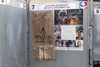 Back in the days : performance Collage Hacking électoral avec le parti Pirate Paris en 2015.