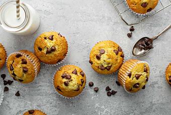 Découvrez la recette ici Muffins aux pépites de chocolat sans beurre