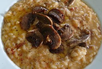 Depuis quelque temps je suis les conseils des chefs cuisiniers qui ne jettent rien. Je fais un bouillon des épluchures de légumes que je garde au congélateur. Comme la courge est assez fade j'ai ajouté ce bouillon maison à l'eau de cuisson de la courge, ce qui a donné un très bon goût à ce risotto.