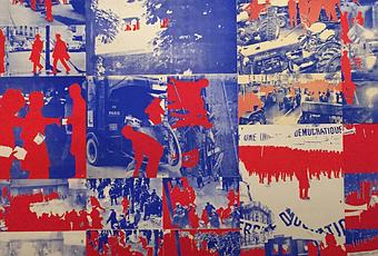 Entrer dans l’exposition consacrée à Élie Kagan dans le très beau bâtiment de La Contemporaine à Nanterre, c’est entrer dans une période dont les évènements résonnent encore aujourd’hui avec beaucoup d’acuité. Le photographe « engagé et libre » témoigne de faits qui ont marqué toute une génération : octobre 1961, février 1962, mai 1968, enterrement de Pierre Overney, manifestations… Il était toujours là, souvent dans la rue, photographiant ici des politiques, là des comédien.ne.s, ailleurs encore des personnalités qu’on reconnaît mais aussi des anonymes, des gens qu’on n’aurait sans doute pas vus sans ces photos. L’entrée dans l’exposition nous met immédiatement dans l’action collective et, poursuivant la visite, nous arrivons à des images d’une vie quotidienne des rues (les gens, les murs, les chantiers…). Ce que Gérard Fromanger a bien compris travaillant en rouge quelques photos d’Élie Kagan sur le Boulevard des Italiens (cette série de photos me fait penser au cliché de Daguerre Boulevard du Temple). Toujours avec deux appareils, Élie Kagan voulait ne rien oublier. Et l’exposition ravive notre mémoire, qui passe, bien sûr, par Nanterre.