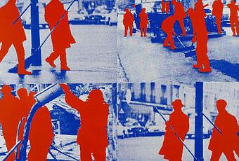 Dans un article du catalogue de l’exposition Élie Kagan à la Contemporaine, Philippe Artières rapproche le travail de Kagan de celui de Perec, deux « enfants cachés pendant l’Occupation ». Il qualifie le procédé du photographe en trois techniques : « la ronde, l’immersion et l’affût ». Ce n’est pas l’extraordinaire qu’il cherche à montrer mais, comme Georges Perec, « l’infra-ordinaire ». Il était « là », où ça se passe, dans la rue. Photographiant un balayeur, image que reprendra Fromanger (ci-contre), photographiant non seulement les manifestations, mais, dans les manifestations, les slogans sur les banderoles, et, se déplaçant dans la ville, les graffitis. Ainsi, écrit Philippe Artières, Élie Kagan fait « entendre la parole énoncée », ses clichés « faisant preuve », véritable « entreprise d’inventaire visuel ».