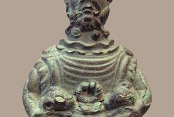 Les Anciens nous ont laissé d'autres images. Il y en a une qui suffit. Celle du dieu aux bois de cerf. Sa posture est assise mais non attachée. Les mains sont déposées sur les genoux ou dans le geste d'embrasser le centre vital. Le regard est grand ouvert, lancé dans l'espace. Le port de tête exprime l'élan vertical, image de l'élan qui est la déesse. Les bois représentent l'expansion de l'énergie, le corps se mélange à l'espace. Il porte le torque de la force véritable et en tient un autre à la main, prêt à transmettre. La corne d'abondance est lovée dans son giron. Il tient le serpent.