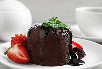 Enfin voila un muffin au chocolat super bon, servez avec du chocolat fondu, tranches de fraises et saupoudré avec du sucre glace.