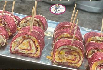 Alors après avoir préparé tous les ingrédients, tu tartines, il tartine, le petit s'y mets, tu coupes la tortilla pour que ce soit plus joli, tu piques un cure-dent dedans et c'est prêt!
