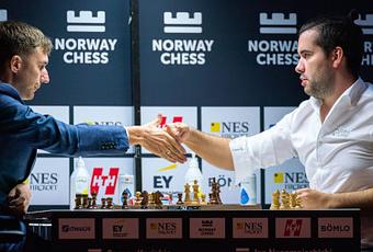 Les deux grands-maître d'échecs russes Sergueï Karjakin et Ian Nepomniachtchi face à face en 2021 sur l'échiquier - Photo © Lennart Ootes