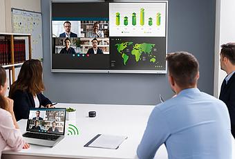 Avec la mise à jour BYOM pour les appareils Vivitek, les réunions sont entièrement pilotées par le PC de l’animateur. La fonction NovoConnect établit une liaison sans fil entre le PC dont le bureau est reproduit sur l’écran principal. Jusqu’ici, en situation de vidéoconférence il fallait utiliser les équipements intégrés de ce même PC : micros, caméra et enceintes.