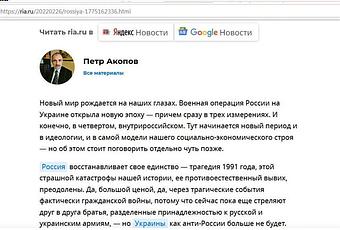 Éditorial de Piotr Akopov publié le 26 février 2022 à l'agence RIA Novosti et sa traduction par Fondapol (2 mars 2022).