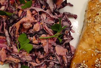 J'ai pris toutes les recettes que j'avais de la salade de chou rouge et j'ai fait un mix de tout, ce qui a donné une très bonne salade.