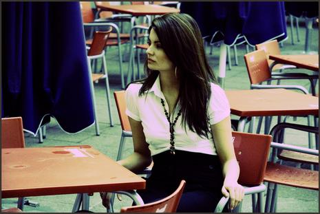 Modèle: CatiaJ'ose à peine poser mon regard sur vous.Vous m'intriguez, mais j'ai peur de vous adresser la parole.Vous pourriez me révéler votre prénom.Je me demande si vous attendez quelqu'un.Ce n'est pas moi en tout cas, je n'ai rien noté dans mon agenda.Pourtant, votre visage ne me semble pas inconnu.Est-ce qu'on ne s'est pas déjà rencontré quelque part? Non? Je ne sais pas, vous me rappelez quelqu'un.