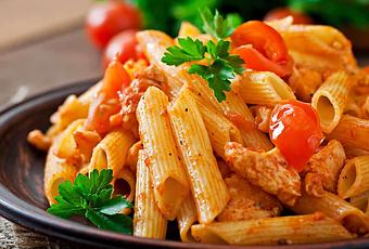 Pennes au poulet et sauce tomate , un délicieux plat des pâtes pour votre dîner , voila la recette facile à la maison et pour toute la famille.
