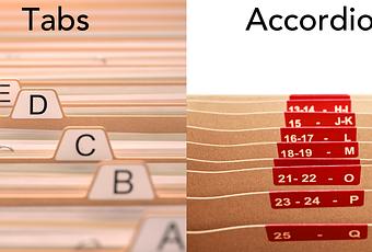 Les onglets et les accordéons sont utilisés pour organiser le contenu de la page de la même manière que leurs homonymes du monde ancien du classement papier.