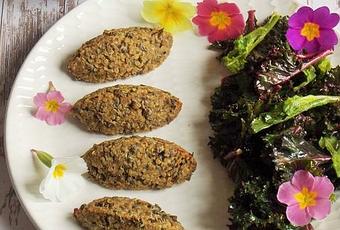 Aujourd'hui, je vous propose des Quenelles lentilles-quinoa, écrasée d'orties et salade choux (Vegan) :