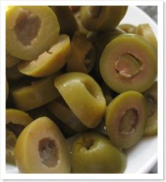 Déposez des morceaux d' olives aux anchois (j'ai coupé en trois chaque olive !!!).