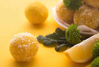 Façonnez des petites boulettes de votre mélange puis roulez-les dans une assiette dans laquelle on a déjà mélangé 25 g de noix de coco avec zeste de 1 citron.