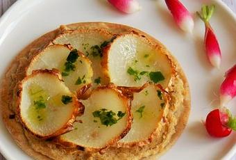 Aujourd'hui, je vous propose une Tarte fine aux radis d'hiver et au houmous (Vegan) (pour 4 personnes) :