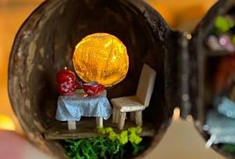 Un art de créations miniatures où les mini personnages sont à la hauteur de la coquille et intégrées au sein d’un environnement champêtre et plutôt cosy.