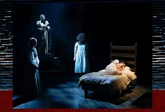Le fait qu’elle soit déterminée à vivre sa vie selon ses propres conditions fait également d’elle une des premières icônes féministes, et Shields élimine une grande partie de l’écriture de Charlotte Brontë pour souligner ce fait. Plutôt que des blocs de dialogue, elle transmettra souvent les jours de son héroïne à travers des mouvements silencieux et répétitifs qui prennent une qualité presque ballétique, gracieuseté du directeur du mouvement Ainsley Hillyard de Good Women Dance. Les paragraphes fondent, exposant et mettant en évidence les os brillants du dialogue drôle, les chapitres tombent les uns dans les autres. La scène nue voit un mouvement continu de lits, de bancs, d’échelles roulantes pour révéler le passage du temps et du lieu ; Les ombres et la lumière habilement déployées par Bonnie Beecher sont utilisées pour montrer les portraits accrochés dans Thornfield Hall.