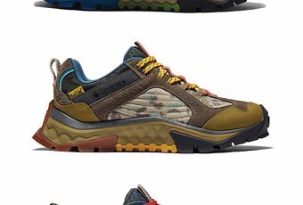 Au centre de la capsule, on découvre la Solar Ridge Hiker, une chaussure à la semelle GreenStride Comfort issue à 75 % de matériaux recyclés et une insole fabriqué à partir de 70% de matériaux biosourcés. L’upper de la silhouette propose de multiples matières mais vient être achevé par une membrane Gore-Tex pour l’aération et l’imperméabilité de la chaussure. Pour le reste, on remarque une capsule clothing complète avec une parka imperméable, un pantalon olive, deux tee-shirts manches longues et enfin un hoodie. Toute la capsule, qui respire la fonctionnalité, se rapproche notamment du travail de la dernière collection de Salehe Bembury, Spunge x New Balance 574 The YURT.