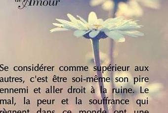 Se considérer comme supérieur aux autres, c'est être soi-même son pire ennemi et aller droit à la ruine. Le mal, la peur et la souffrance qui règnent dans ce monde ont une même origine : l'attachement au "Moi". - Dalaï Lama