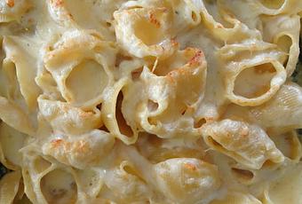 Pour ce plat il fallait des pâtes Conchiglioni à farcir que je n'ai pas trouvées le jour J et je n'avais pas envie de faire des kilomètres pour en trouver au hypermarché. Je les ai remplacées par des pâtes lumaconi, qui sont bien plus petites. De ce fait je n'ai pu procéder comme indiqué dans la recette. J'ai donc simplement servi la "farce" ensemble avec les pâtes au lieu de farcir les pâtes avec.