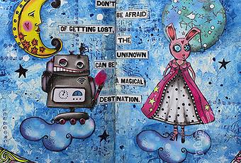 Hello, hello. Une petite page d’art journal, (que ca m’avait manqué !). J’ai utilisé les dies cut Art by Marlene