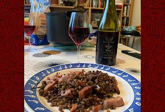 Aujourd'hui j'ai vécu une expérience particulière. Je suis en convalescence, et j'ai repris le boulot lundi. D'abord en télétravail, aujourd'hui en présence. Avec passage devant la DRH pour mes "mandats syndicaux", que j'assume avec responsabilité et diligence. Le problème est juste que je suis en inéquation avec ma hiérarchie, mon département.Je ne suis pas meilleurs. Mais je n'ai pas les mêmes valeurs. Je privilégie 50 € de moins sur la fiche de paie, mais que les enfants voient leurs parents, et que la priorité soit à la maison qu'au boulot. Je suis dans le temps long : je ne supporte pas les changements de cap et de priorité toutes les cinq minutes. Supporter au sens physiologique du terme : le pilote de F1 ou de Falcon est capable de se prendre des G dans la gueule. Moi pas. Aujourd'hui, je suis retourné (pour la première fois de l'année) à la cantine de mon travail (avec les gens qui m'ont poignardé). Et j'ai fait une erreur. J'ai pris un burger végan.Je suis le mari d'une fille et petite fille de boucher charcutier. Et j'ai gouté à... Cette merde. Pourquoi ? Je ne sais pas. J'en parlerai à mon cardiologue (un nouveau dans la famille) et à mes psys et docteurs. J'en parle ici.Alors ce soir je reviens sur mes bases. Le vin de mon ami témoin dans les bons et mauvais moments. Un saucisse lentilles bien comme il faut.
