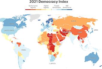 Hé, pas si vite ! Selon l'indice de démocratie 2021 que vient de publier le magazine « The Economist », voici ce que donnent les résultats annuels de l'état de la démocratie dans 167 pays sur la base des cinq mesures suivantes :