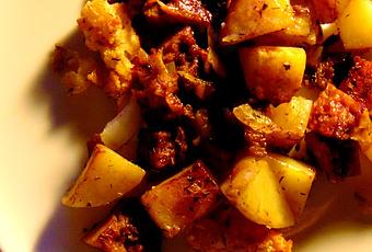- des pommes de terre (Yukon Gold) coupées en cubes.